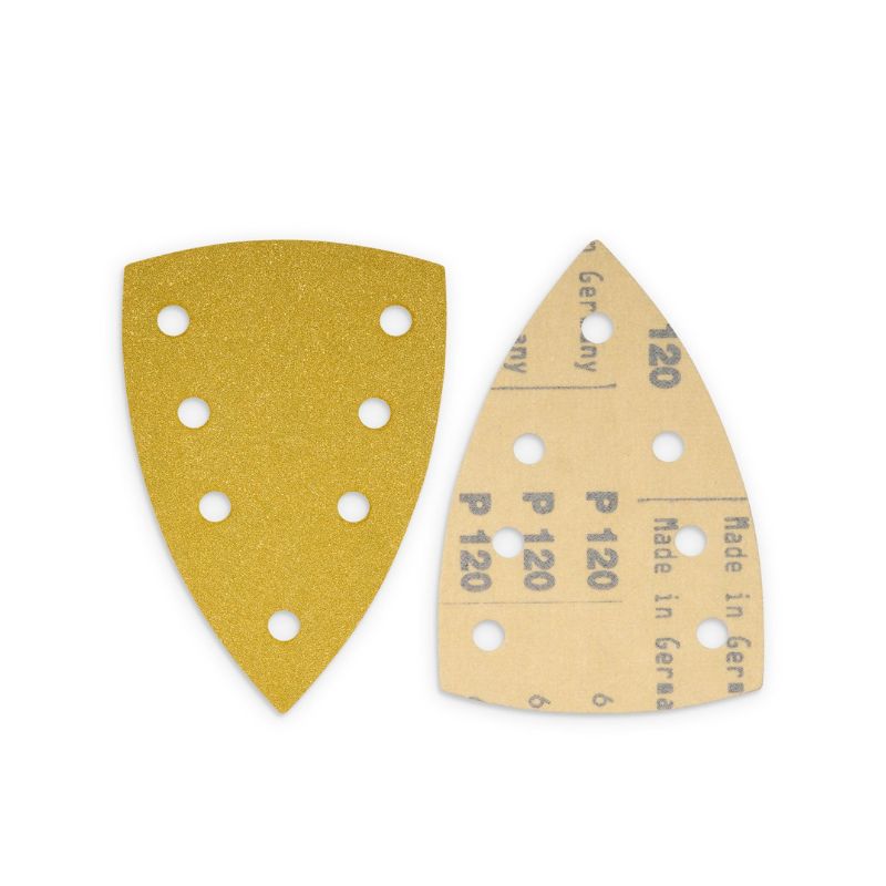 Delta slippapper för Festool DTS 400 och andra deltaslipar. 100×150 mm, 7-hål, kardborre. Mycket fin slipning med stearatbeläggning.