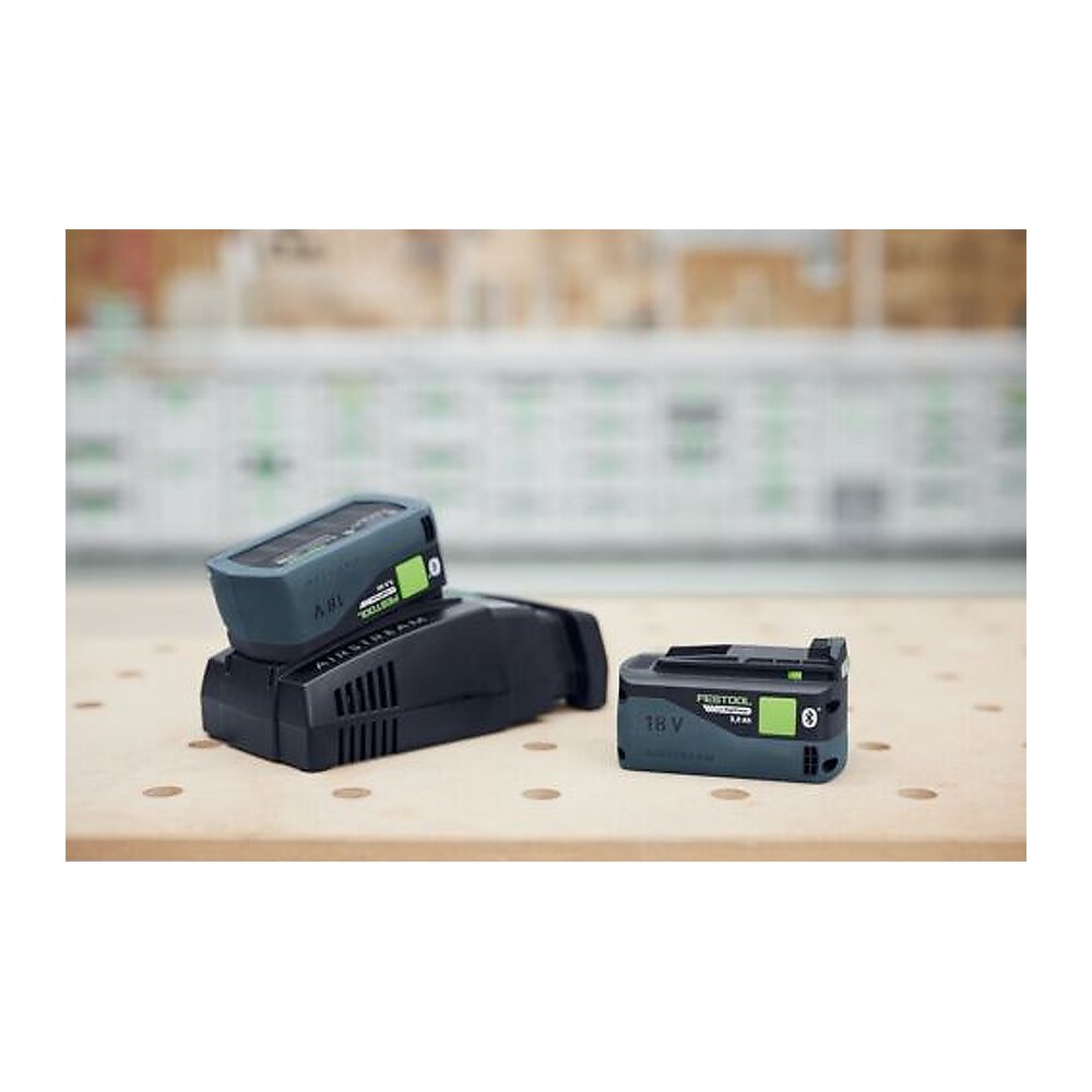 - Extrafunktioner: Med Festool-appen i kombination med batteriets Bluetooth®-funktion får du tillgång till smarta extrafunktioner, exempelvis detaljerad indikering av laddningsstatusen och fler driftdata, som temperatur eller laddningscykler. För att snabbt och enkelt kunna se vilket batteri som har lägst laddningsstatus kan du låta LED-indikeringen blinka direkt på batteriet. Du kan även göra programuppdateringar: Installera den senaste versionen så att du alltid arbetar med verktygets nya funktioner