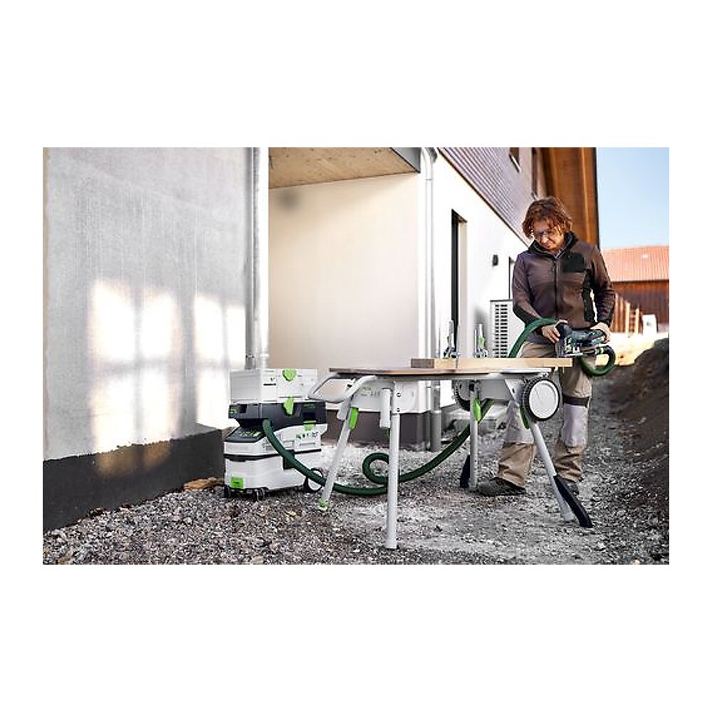 • Eftersom batteristicksågen ligger i en Systainer³ passar den perfekt i fordonsinredningen från bott när den ska transporteras från verkstaden till bygget. Alla Systainer³ är kompatibla med varandra och kan kopplas på alla tidigare Systainer-generationer, dammsugare och många andra systemtillbehör, till exempel rullvagnen eller det mobila multibordet